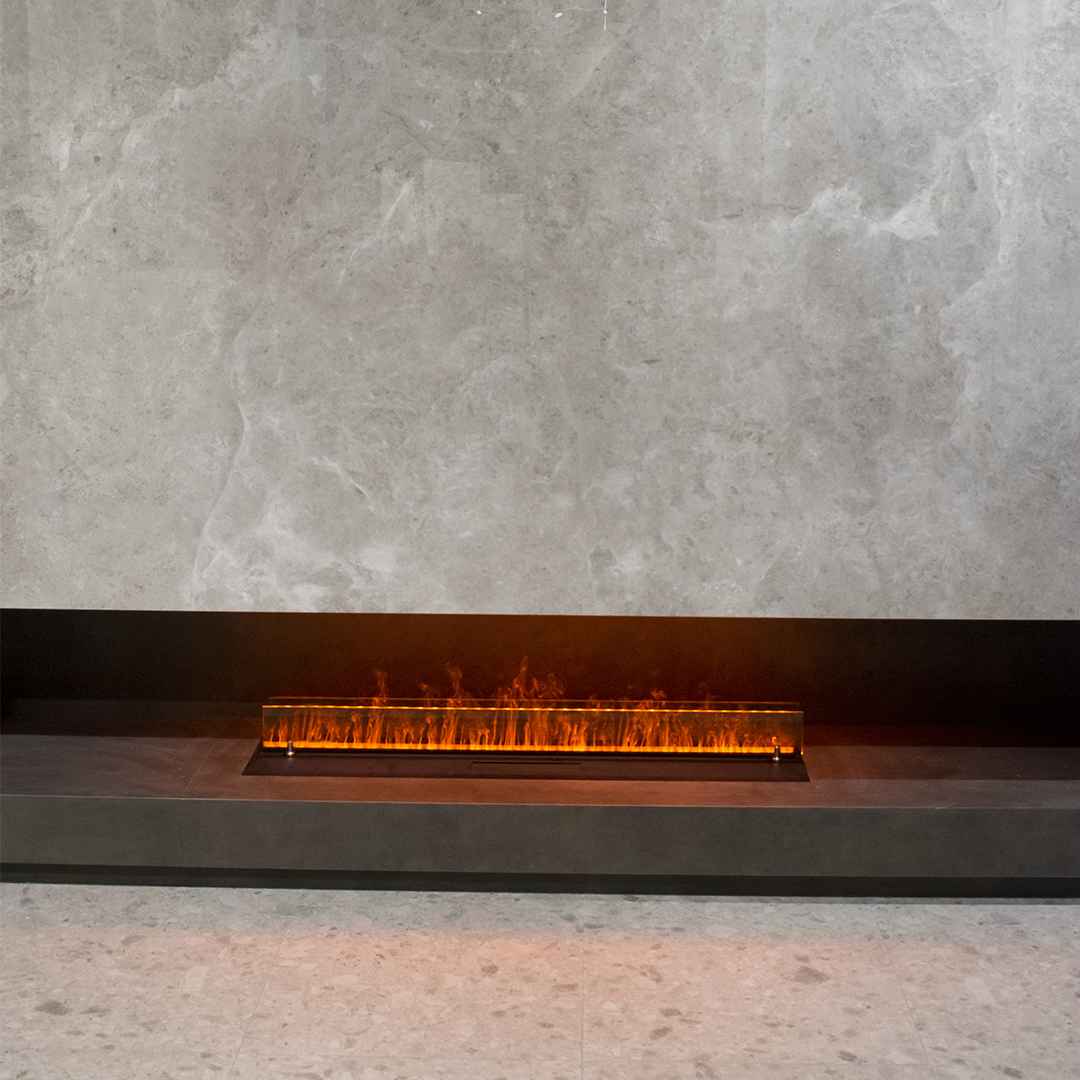 Реалистичное пламя образуется при проецировании лучей на пару. Такая имитация огня имеет довольно высокую степень схожести с реальным пламенем и является полностью безопасной для окружающих, а испаряющаяся вода, повышает влажность воздуха, создает комфортный микроклимат.