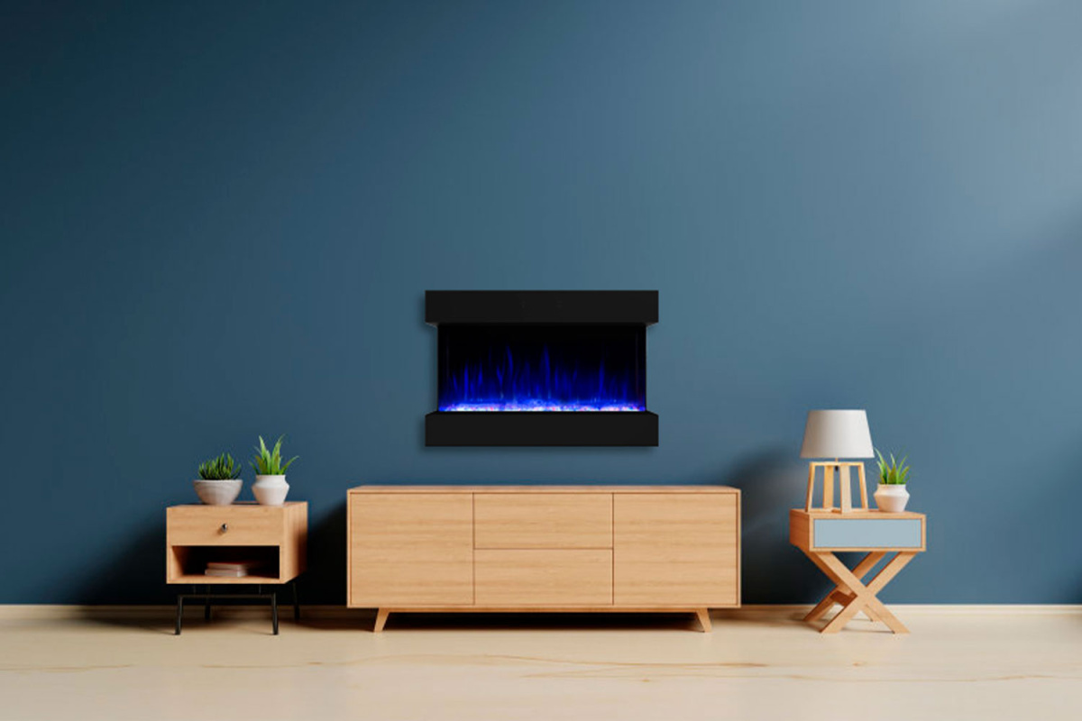 Изюминка очагов – декоративное топливо в виде кристаллов и мерцающих поленьев, а также возможность выбора цвета пламени из трех доступных вариантов. Яркость огня также можно регулировать.