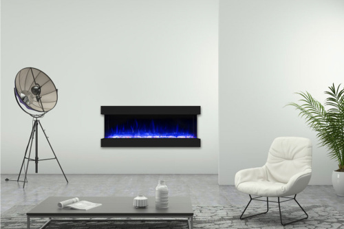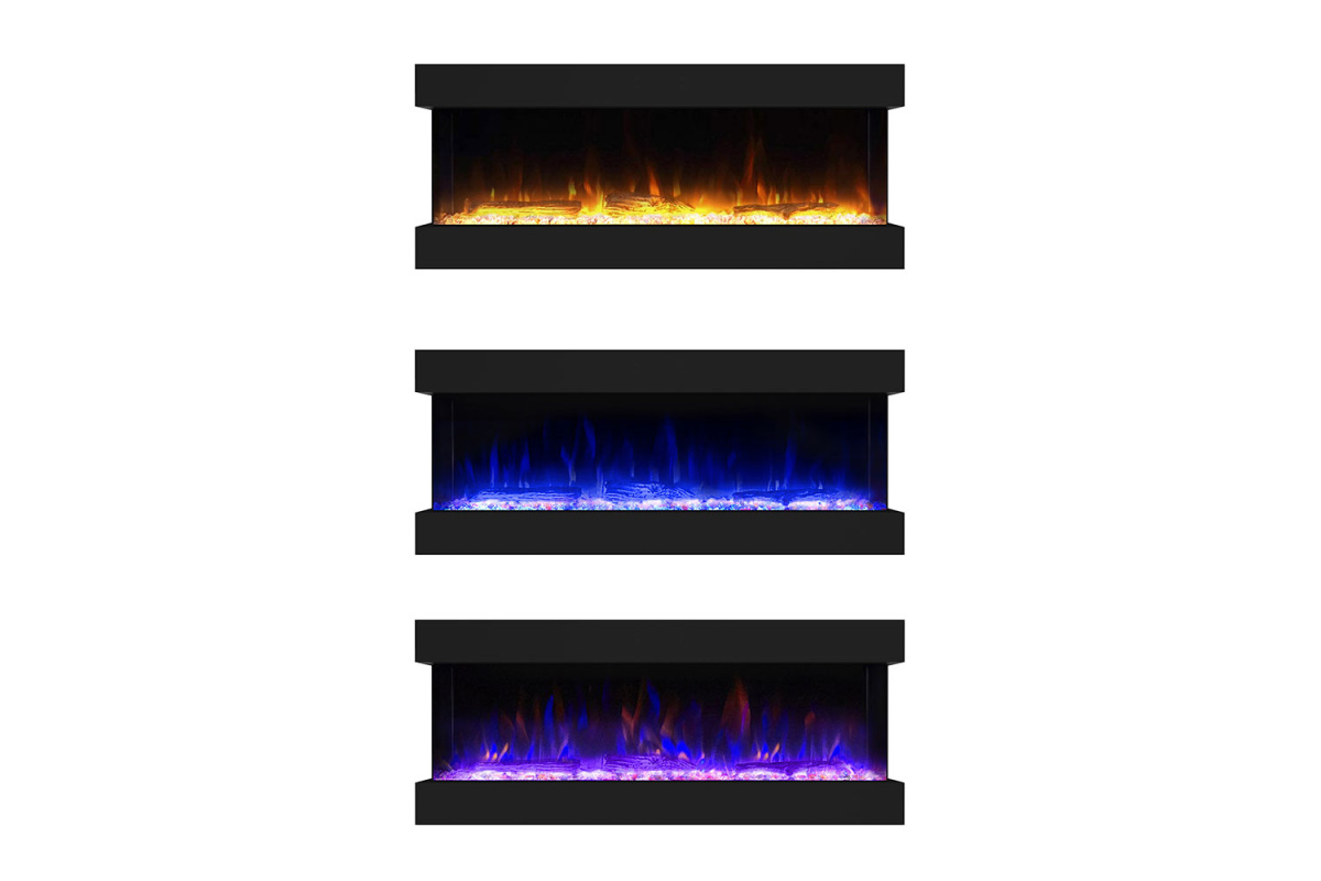 Изюминка очагов – декоративное топливо в виде кристаллов и мерцающих поленьев, а также возможность выбора цвета пламени из трех доступных вариантов. Яркость огня также можно регулировать.