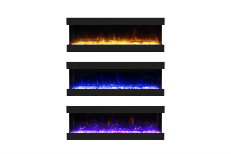 Изюминка очагов – декоративное топливо в виде кристаллов и мерцающих поленьев, а также возможность выбора цвета пламени из трех доступных вариантов. Яркость огня также можно регулировать.