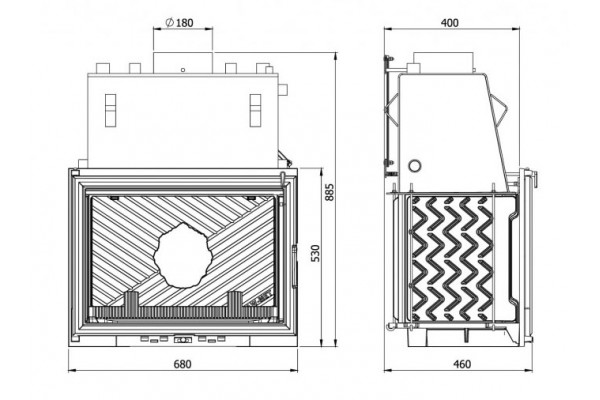 • дефлектор увеличивает тепловую эффективность путем удлинения пути прохождения продуктов сгорания в пространстве каминной топки;