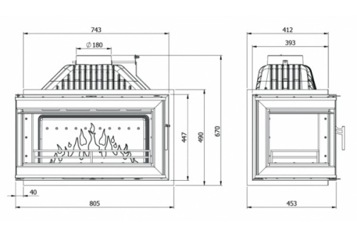• дефлектор увеличивает тепловую эффективность путем удлинения пути прохождения продуктов сгорания в пространстве каминной топки;