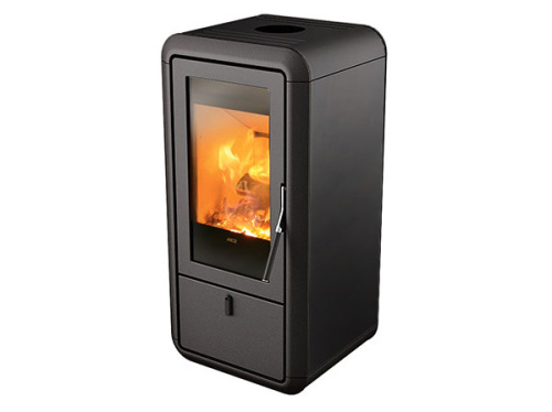 Дровяная печь с современным дизайном оснащена силиконовой ручкой для безопасного открывания дверцы, металлическими элементами по бокам и сверху (доступные цвета: Black and Aluminium).