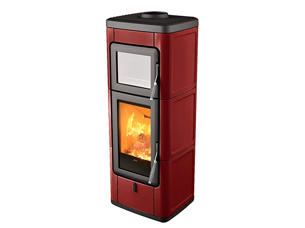 Дровяная печь с классическим дизайном оснащена пружинной ручкой, чугунным верхом и керамическими элементами по бокам (доступные цвета: White, Bordeaux, Warm Grey, Black). Встроенная духовка.