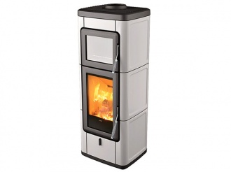 Дровяная печь с классическим дизайном оснащена пружинной ручкой, чугунным верхом и керамическими элементами по бокам (доступные цвета: White, Bordeaux, Warm Grey, Black). Встроенная духовка.