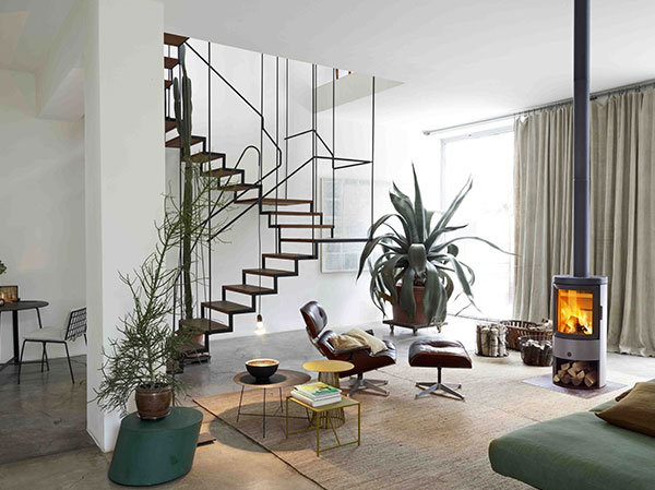Компактная дровяная печь с округлым фасадом оснащена скрытым рычагом управления горением, удобной ручкой с автоматическим механизмом закрывания дверцы и встроенным отсеком для дров. Каминная печь доступна в цветах: Black и Silver.