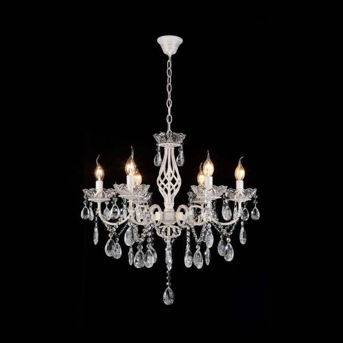 Люстра металл 2313/6 WG — элегантное украшение интерьера в классическом стиле. Изготовлена из металла белого цвета с золотистой патиной, подчеркивающей благородство и утонченность дизайна. Диаметр изделия составляет 63 см, высота варьируется от 60 до 82 см благодаря регулируемым подвесам. Осветительный прибор оснащен шестью цоколями E14, позволяющими установить лампы мощностью до 40 Вт каждая (общая максимальная мощность — 240 Вт). Лампы в комплект не входят, что позволяет подобрать освещение индивидуально под нужды помещения.