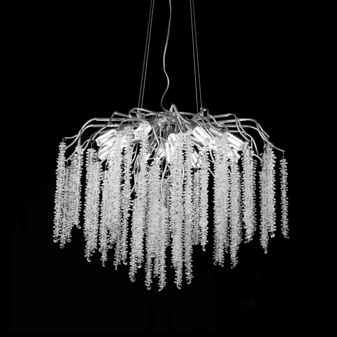 Люстра P6075/D800 SV с серебристой металлической арматурой и хрустальными плафонами придаст интерьеру благородный и торжественный вид. Модель оснащена 10 лампами с цоколем E14, мощность каждой до 40 W, общая мощность составляет 400 W. Внушительные размеры (диаметр 800 мм×высота 1700 мм) делают люстру идеальным решением для просторных помещений: она обеспечит яркое освещение и станет выразительным элементом дизайна, преломляя свет через хрустальные элементы и наполняя пространство игрой бликов.