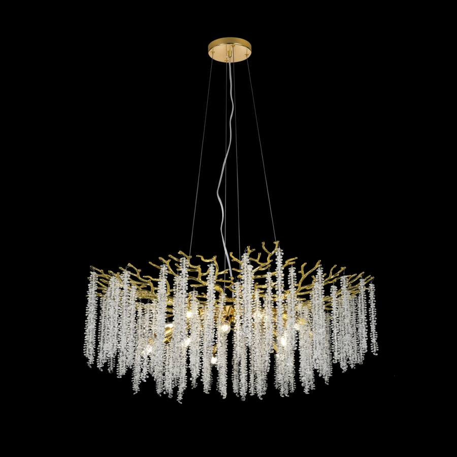 Люстра P8078/D 1000 GD GD — роскошный подвесной светильник, который станет центральным элементом изысканного интерьера. Металлическое основание золотого цвета в сочетании с хрустальными подвесками создаёт эффектное сияние и наполняет пространство игрой световых бликов, подчёркивая статусность обстановки. Модель рассчитана на 14 ламп с цоколем E14 с общей мощностью 560 Вт (по 40 Вт на лампу) и обеспечит яркое, равномерное освещение просторного помещения — идеально подойдёт для гостиной, столовой или холла. Регулируемая высота (360–1560 мм) позволяет адаптировать люстру под потолки разной высоты, а габариты (1000×360–1560 мм) и продуманный дизайн помогут органично вписать её в интерьер. Элегантная модель придаст обстановке торжественный шарм (лампы в комплект не входят).