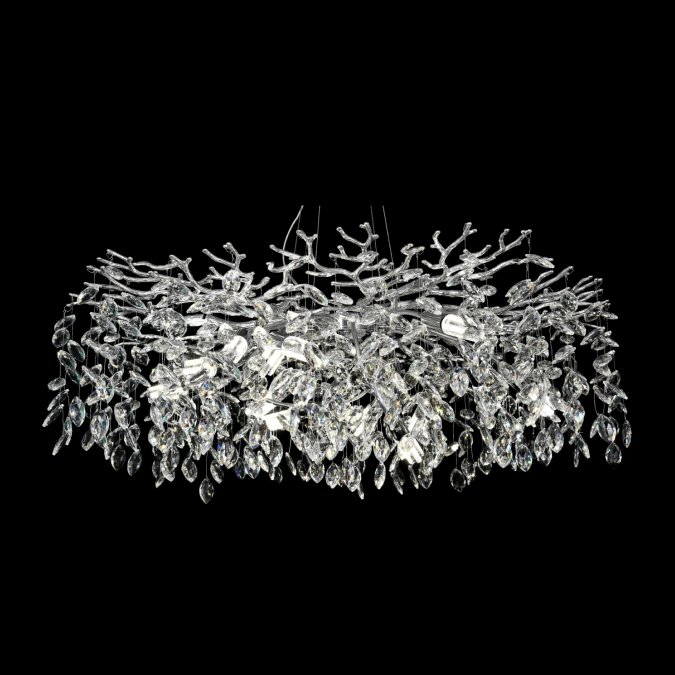Люстра P8088/D1000CR CR с хромированной металлической арматурой и хрустальными плафонами создаст в интерьере атмосферу утончённой роскоши. Модель рассчитана на 14 ламп с цоколем E14 (в комплект не входят), каждая мощностью до 40 W — общая мощность достигает 560 W. Внушительные размеры (диаметр 1000 мм×высота 1560 мм) делают люстру отличным выбором для просторных залов, гостиных или столовых: хромированные элементы эффектно сочетаются с хрусталем, а множество источников света обеспечивают яркое и равномерное освещение с завораживающими бликами.