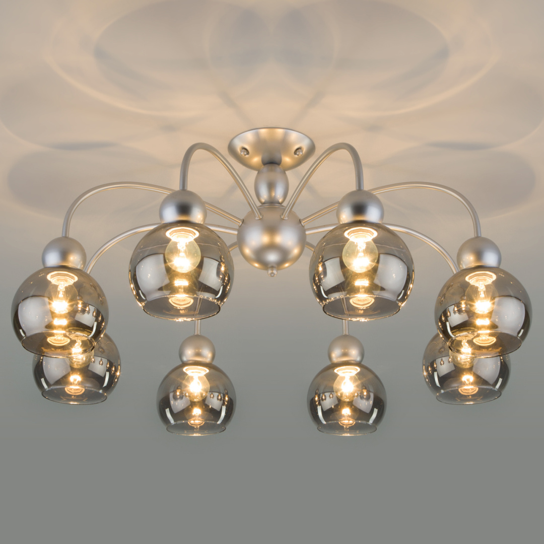 Потолочная люстра Eurosvet Fabia 30148/8 серебро с круглыми плафонами осветит помещение площадью 32 кв. м. Производитель Eurosvet рекомендует использовать для устройства лампы накаливания с цоколем E14 и мощностью 60 W.