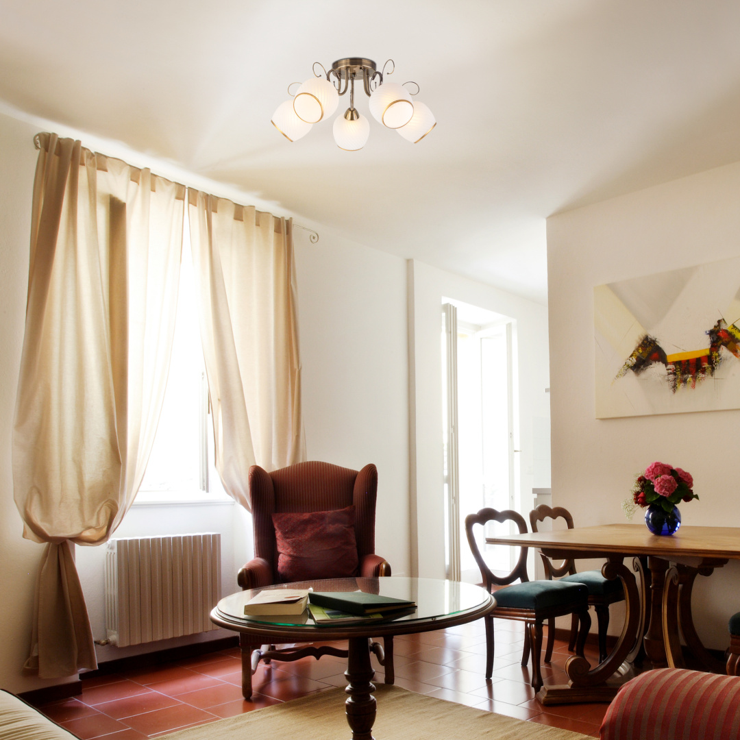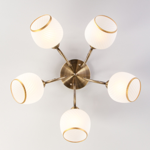 Люстра 30159/5 античная бронза относится к коллекции Brooksy и отлично подойдет для установки на низкий потолок спальни, оформленной в стиле модерн. Потолочная люстра с овальными плафонами. Производитель рекомендует использовать для устройства лампы накаливания с цоколем E27 и мощностью 40 Вт. Прибор произведен с использованием материалов: стекло и металл и может использоваться для натяжного потолка. Основным цветом товара является белый и бронзовый.