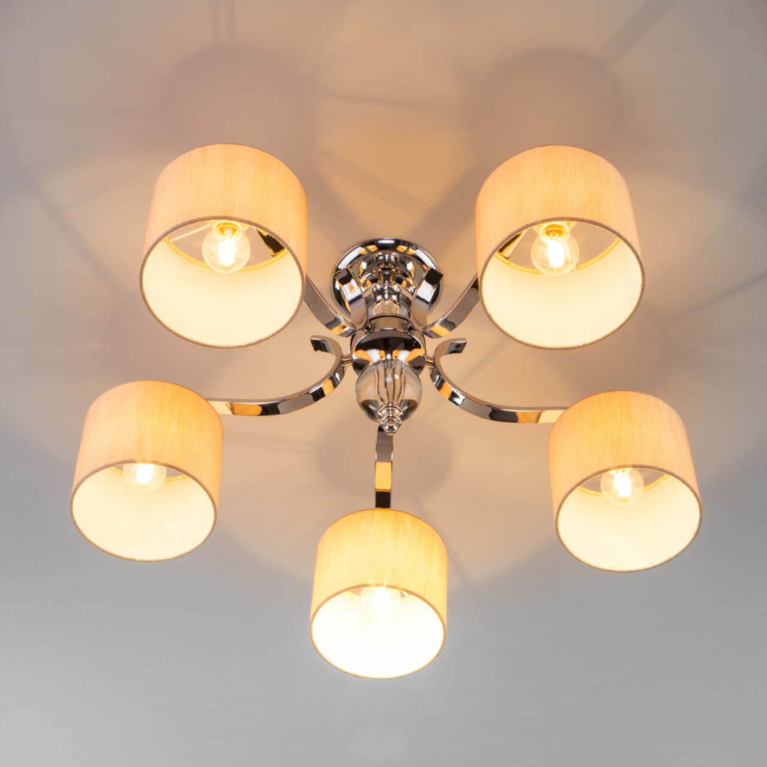 Люстра 60111/5 хром от российской компании Eurosvet относится к коллекции Shantel и отлично подойдет для установки на низкий потолок в гостиной, оформленной в современном стиле. Производитель Eurosvet рекомендует использовать для устройства лампы накаливания с цоколем E14 и мощностью 40 W.