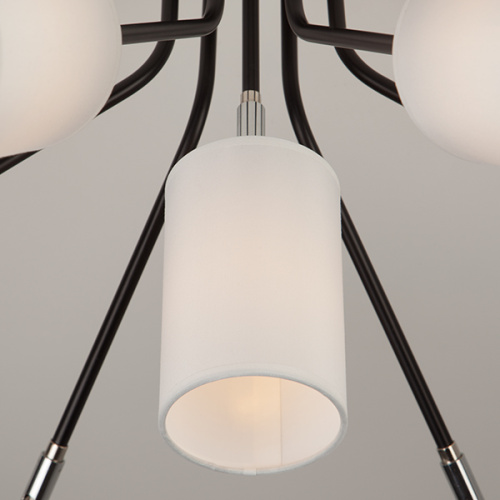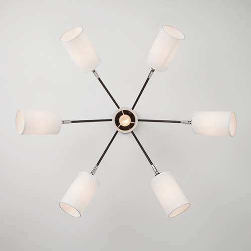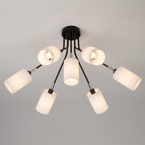 Тканевые абажуры выполнены в актуальной бело-черной гамме, а поворотные рожки позволят осветить даже самые дальние уголки помещения