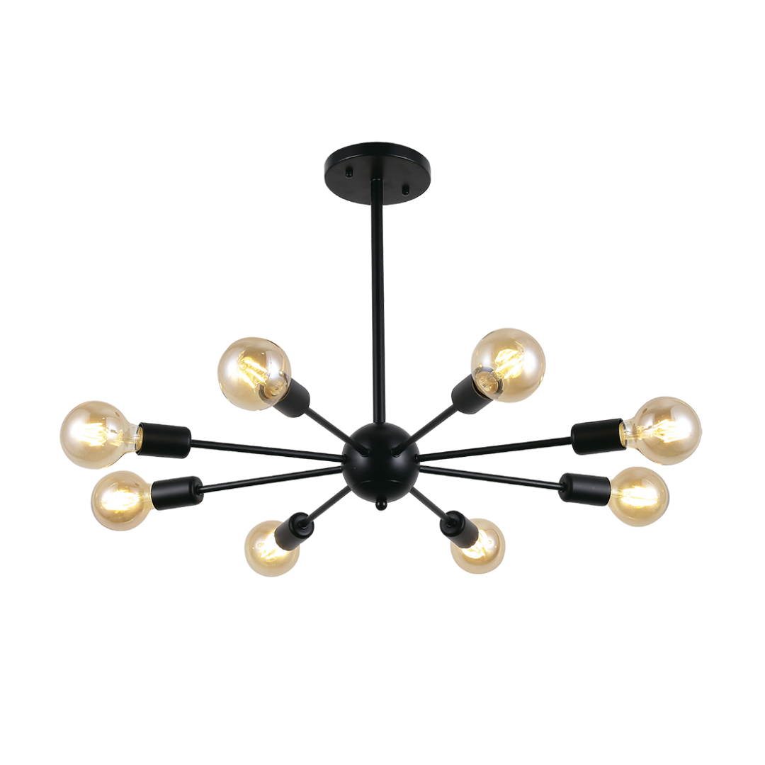 Потолочная люстра серии PRATO на восемь плафонов предназначена для общего освещения. Выполнена в черном металлическом корпусе. Стандартный цоколь Е27 позволяет использовать светодиодные лампы и лампы накаливания до 40 Вт.