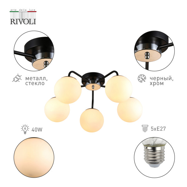 Люстра Florentina 9118-305 подойдет для установки на потолок кухни, оформленной в современном стиле. Потолочная люстра с плафонами в виде шаров осветит помещение площадью 15 кв. м. Производитель Rivoli рекомендует использовать для устройства лампы накаливания с цоколем E27 и мощностью 40 W.