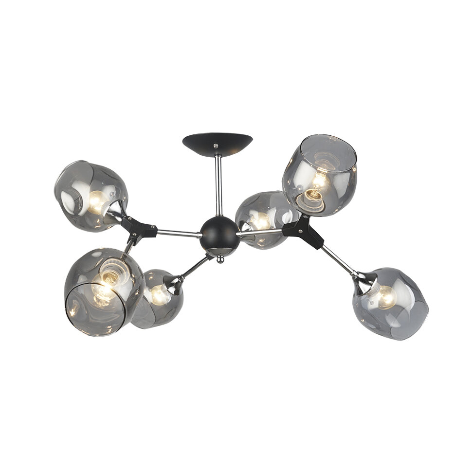 Люстра SF3328/6C-BK-CR-SMK состоит из шести плафонов, которые обеспечивают равномерное освещение всего пространства. Плафоны изготовлены из прозрачного стекла, что позволяет свету проходить через них, создавая мягкое и приятное освещение.