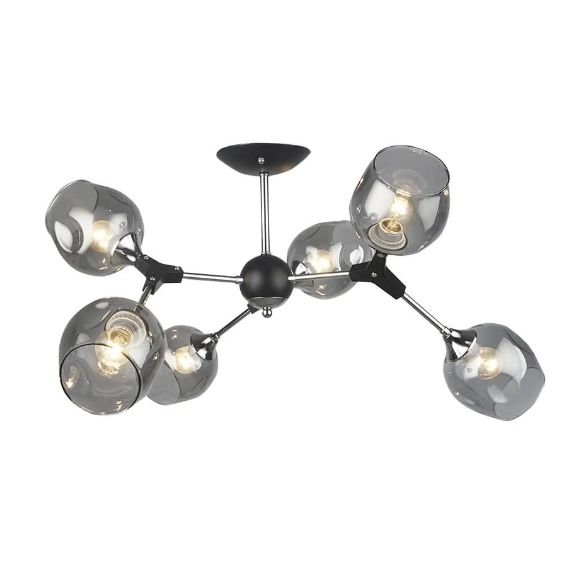 Черный и хром цвета в оформлении люстры придают ей стильный и современный вид. Металлический каркас обеспечивает надежность и долговечность конструкции, а стеклянные плафоны легко моются и сохраняют свой первоначальный вид на протяжении всего срока.