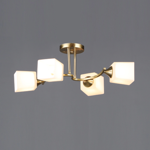 Люстра 6397/4 COP сочетает в себе стильный внешний вид и функциональность. Современный дизайн в латунном исполнении дополнен белыми стеклянными плафонами, обеспечивающими мягкое и ровное распределение света. Четыре патрона E27 предоставляют возможность выбрать подходящие лампочки самостоятельно. Универсальные размеры и потолочное крепление делают люстру идеальной для большинства современных интерьеров.