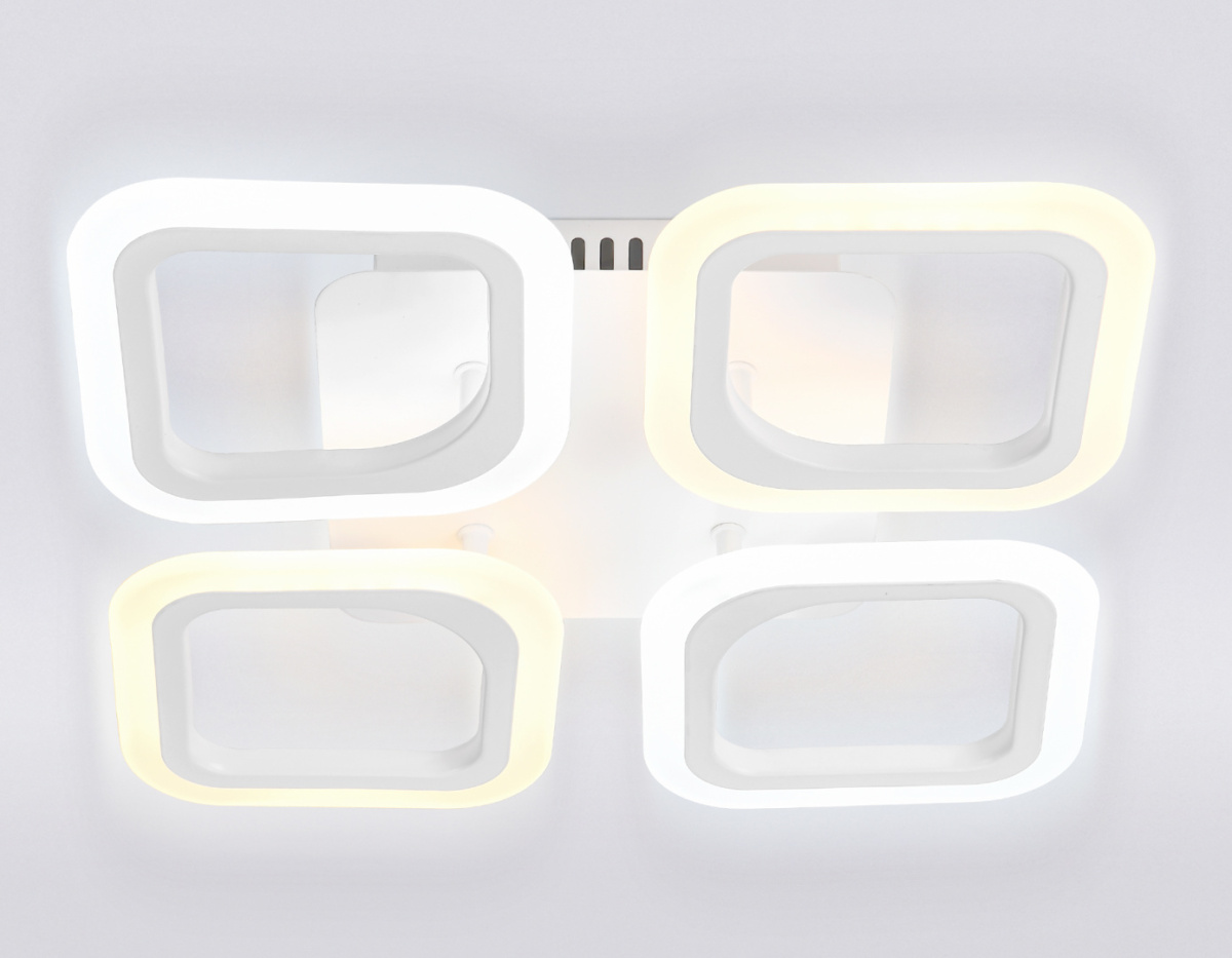 Люстра светодиодная FA4371/4 WH белый 45W (пду) выполнена в белом цвете, квадратной формы, состоит из 4 акриловых плафонов на металлическом каркасе. Эта модель оснащена встроенными светодиодами, благодаря чему вы забудете о замене дополнительных ламп. Так же с помощью инфракрасного пульта вы сможете регулировать цветовую температуру, яркость освещения и ночной режим. Данная модель подходит для натяжных потолков и будет прекрасным дополнением в любом помещении.