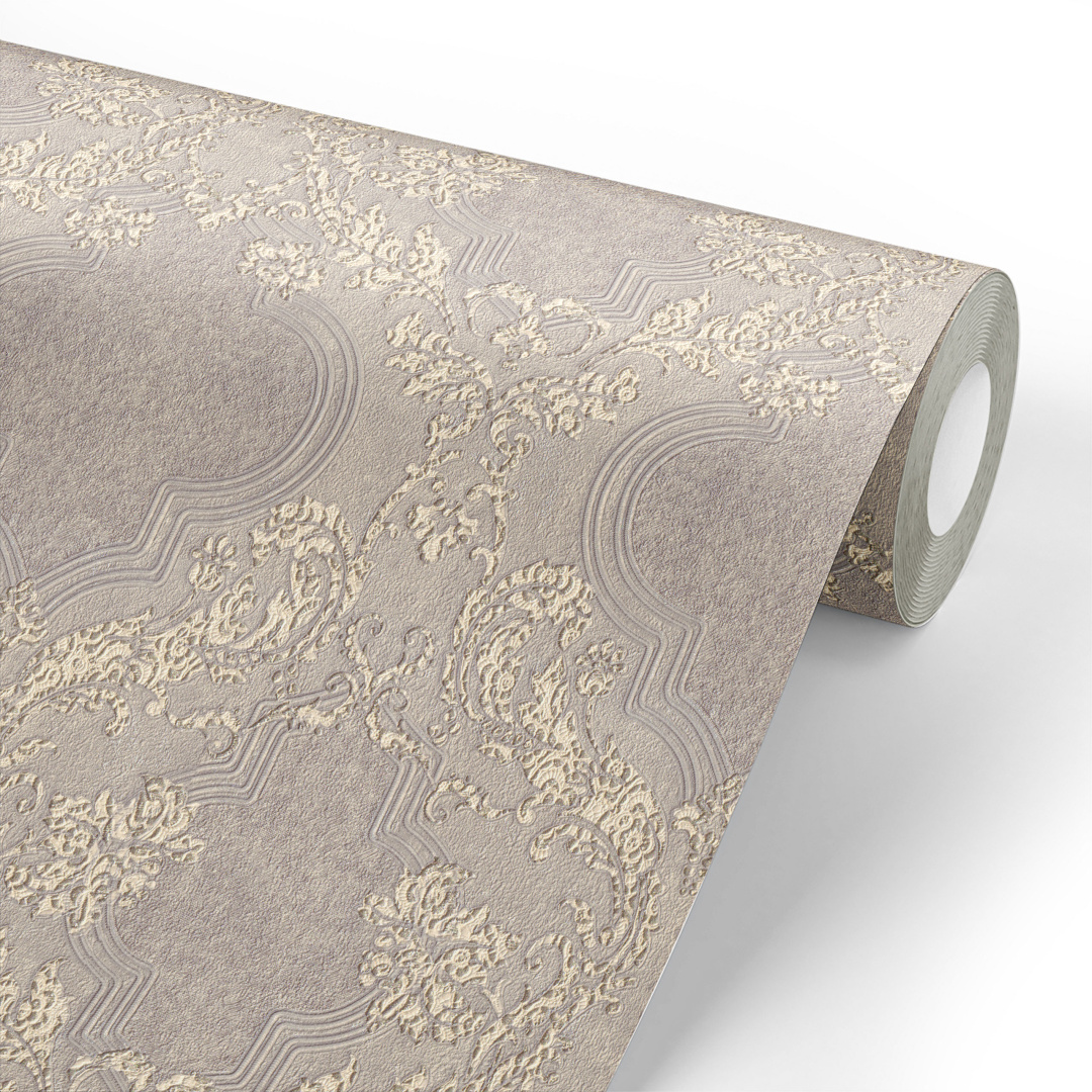 Русские красавицы в невесомых пуховых платках, выполненных оренбургскими кружевницами — запоминающийся образ, который возникает при одном взгляде на готовую коллекцию. Мотив — пушистый, но невесомый дамаск небольшого размера, где второй темой выступает стилизованный внутренний дамаск, будто вышитый шелковыми нитями. Мотив строится по принципу «all over», дословно — покрывающий все, что делает его приятным для обозревания человеческим глазом. Фоновый компаньон — мечта любителя матовых эффектов. Тонкая матовая штукатурка в сдержанной цветовой гамме, скрывающая меткие неровности стены.