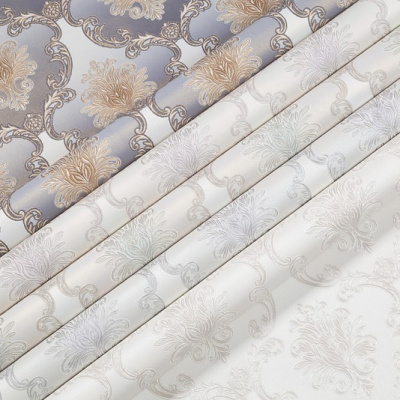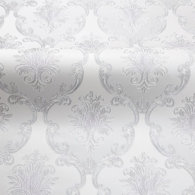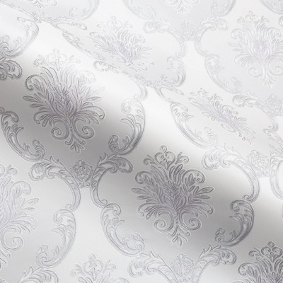 Фон и мотив объединяет текстура дорогого шелка. Она переливается под разными углами благодаря разнонаправленному рельефу и перламутру. Орнамент из королевских дамасков и вензелей на сатиновом фоне сохраняет безупречную симметрию, оставаясь сдержанно элегантным. Контуры узоров деликатно подсвечены искрящимися блестками, а плавные градиентные переходы раскрывают глубину цвета.