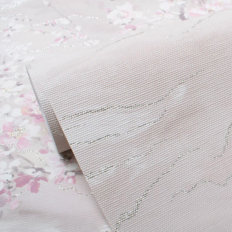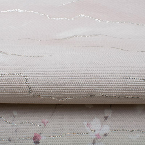 Обои завораживают своей подачей, характером и техникой исполнения. Роспись выполнена фактурными красками по рельефной матовой текстильной поверхности. Глубину матовости рисунка, переход цвета и супербелизну лепестков подчеркивают поистине уникальные декоративные эффекты, которые отражены на тонких линиях в мотиве и фоне. Каждое цветовое решение, каждая пара украшена разными декоративными акцентами: матовые белые камушки и мерцающие розовым золотом частички. Вас точно поразит прозрачная слюда с оттенками натурального жемчужного перламутра с сиреневым или розово-зеленоватым подтоном и камушки с эффектом хамелеона. Обратите внимание, как аккуратный перелив в трех цветах эффектно смотрится на обойном полотне и деликатно сверкает наш любимый оттенок платины в в фирменном эффекте «суперблеск».