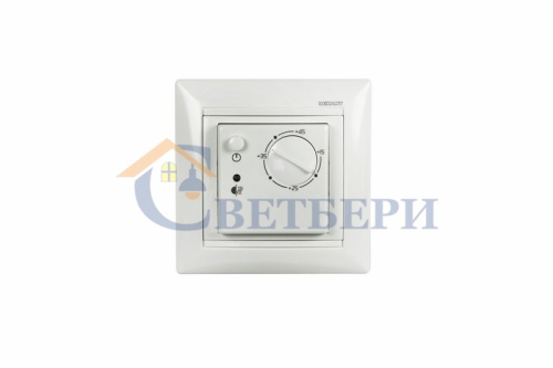 Оснащен датчиком температуры пола. Совместим с розетками и выключателями Legrand серии Valena. Корпус изготовлен из пластика бежевого цвета.